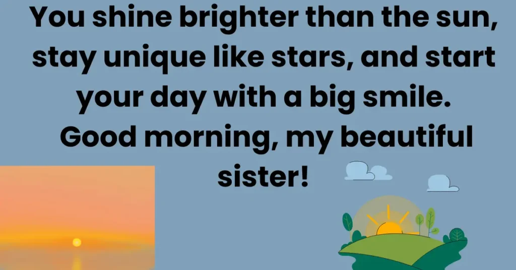 - You shine brighter than the sun, stay unique like stars, and start your day with a big smile. Good morning, my beautiful sister!
